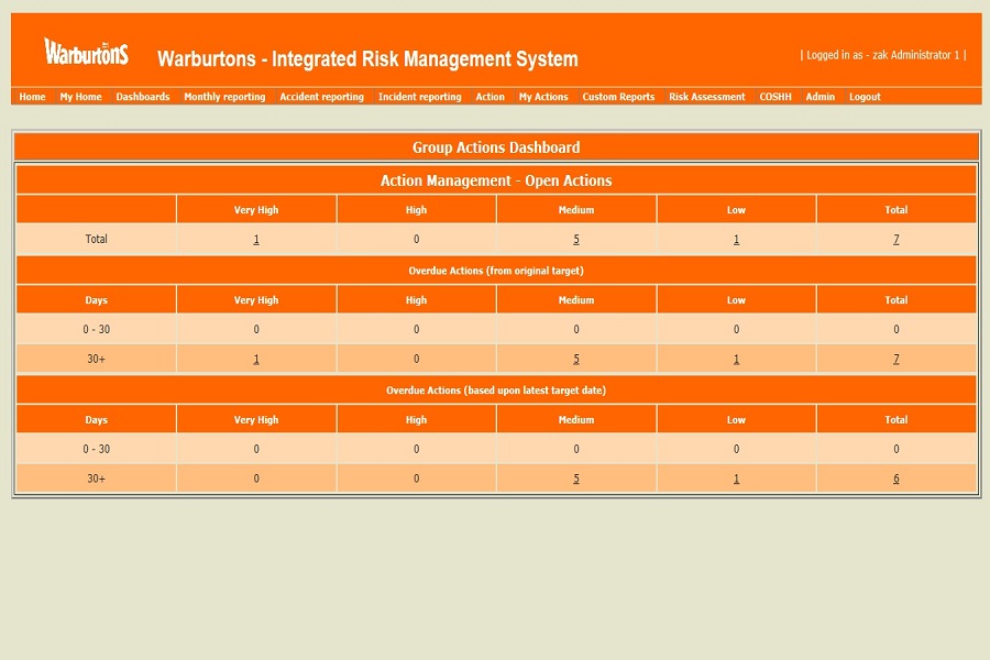 View all High, Medium and Low open Actions. Overdue Actions. Drilldown to individual action records.