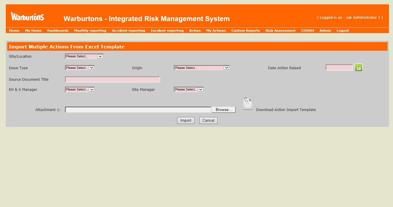 Save time using our import multiple actions facility.